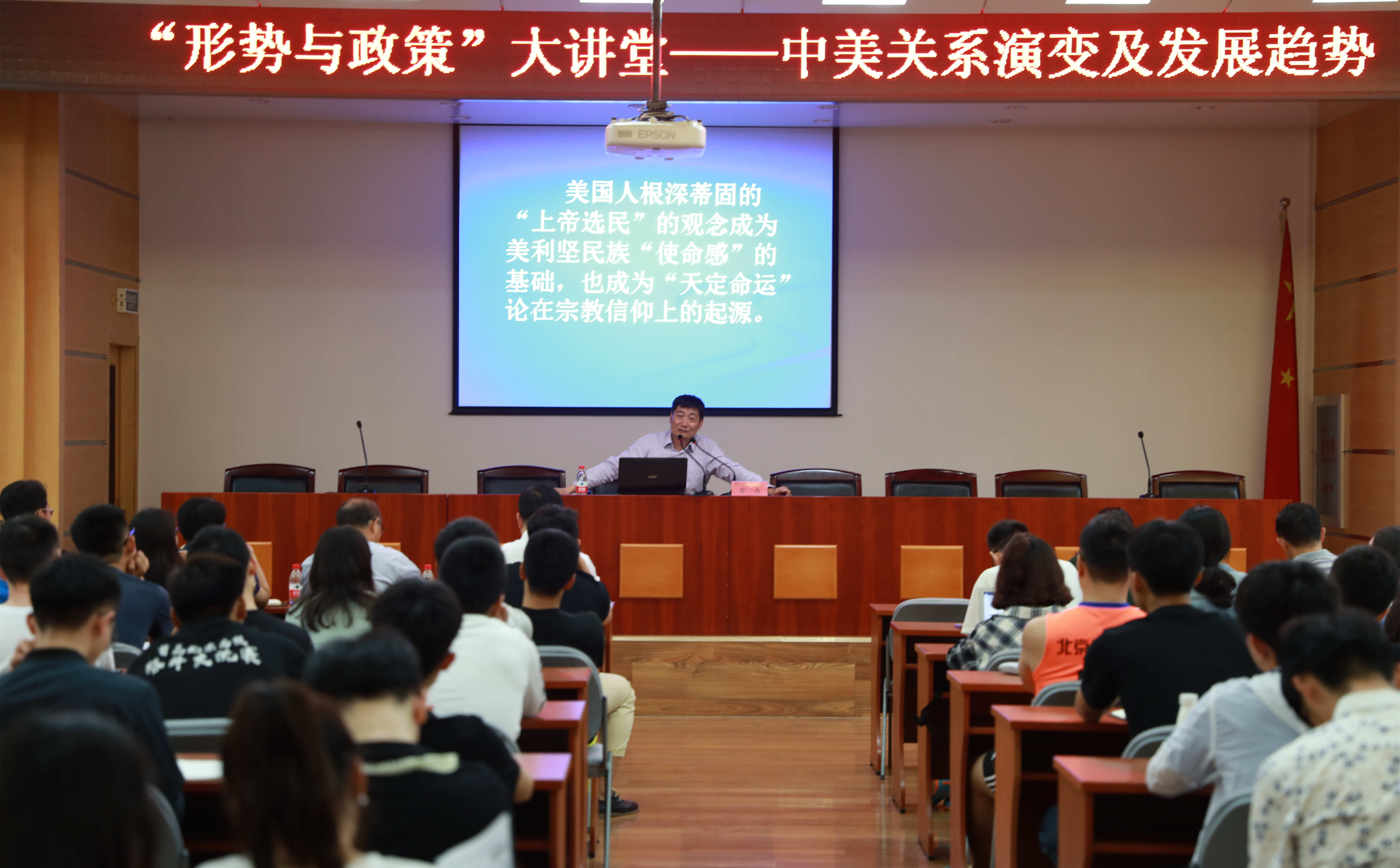 为进一步学习贯彻全国高校思想政治工作会议的重要精神,扎实落实教育部关于加强“形势与政策”课建设的若干意见,在公司党委领导下,中国·必威(西汉姆联)官方网站-betwayspo创新思政课公司产品方式,专门开设“形势与政策”大讲堂,发挥形势政策教育的主渠道、主阵地作用,特邀国内知名中美关系专家、中央党校国际战略研究所所长宫力教授,于2018年5月17日19:00在北办302会议室举行大讲堂第一次讲座,讲座由公司党总支书记付红星主持。本次讲座的主题是“中美关系演变及发展趋势”。