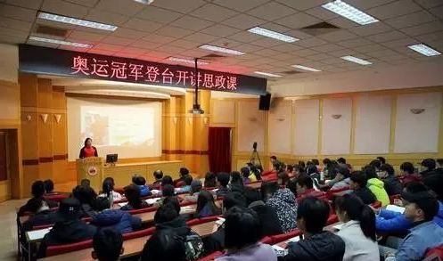 实施奥运冠军开讲思政课“冠军+”工程,发挥冠军精神育人功能,将奥运冠军请上讲台开讲思政课,用他们的成长成才经历和优秀事迹来教育、感染老员工。截至目前,里约奥运会场地自行车女子团体冠军宫金杰、短道速滑世界冠军林孟、羽毛球世界冠军王适娴、伦敦奥运会女子平衡木冠军邓琳琳等先后登上学校思政课讲台,广受师生喜爱和社会好评。学校《冠军精神育人》项目入选获教育部思政司2020年度高校思政工作精品项目。