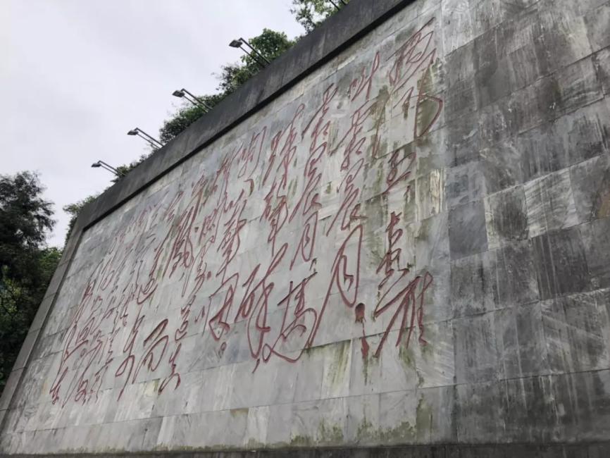 来到娄山关的代表作品摩崖石刻前,同学们心怀崇敬,动情朗诵并合唱了《忆秦娥·娄山关》一曲。